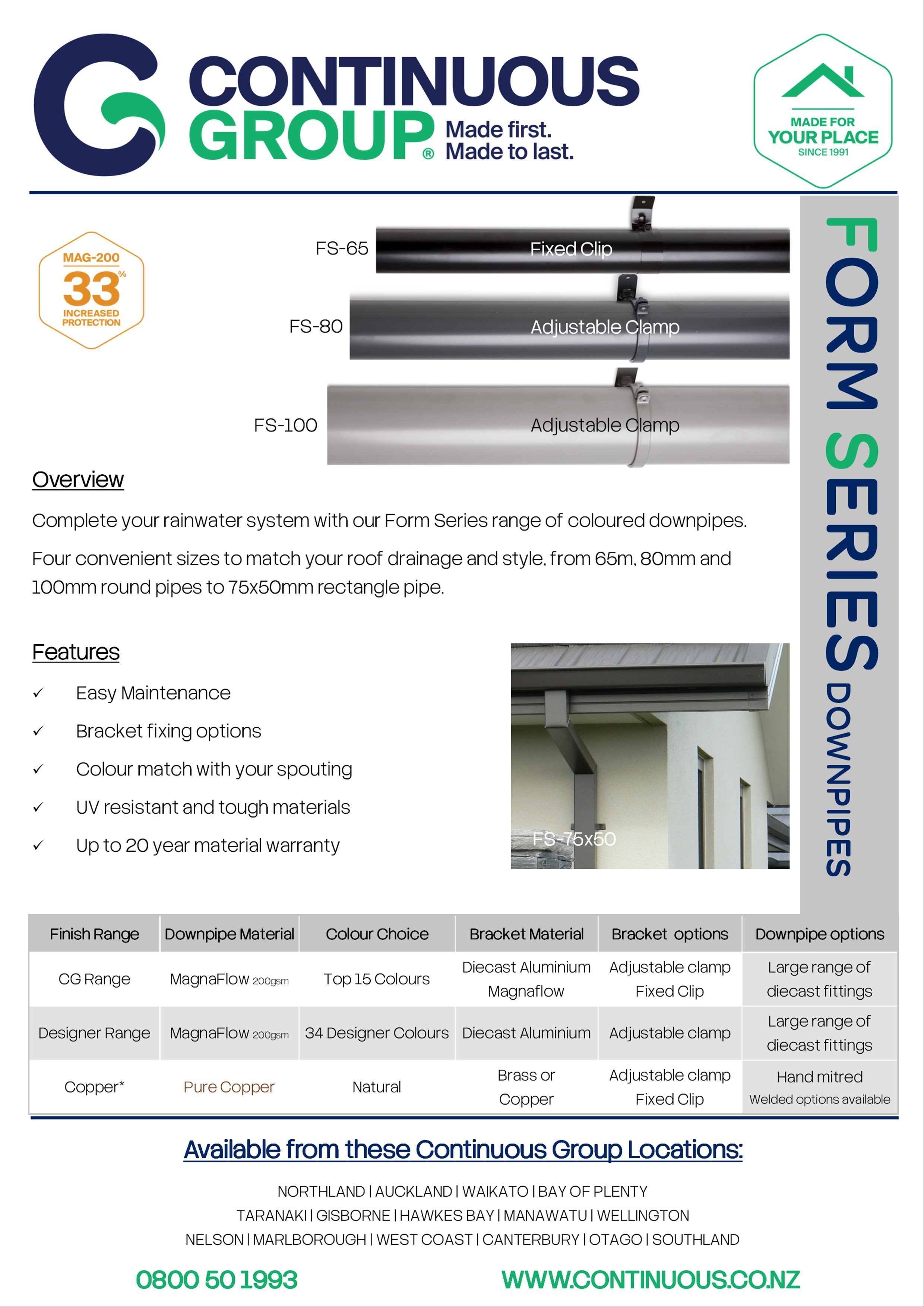 Scroll down to see images of Continuous downpipes on a range of Kiwi homes, along with colour and finish options and downloadable technical files.