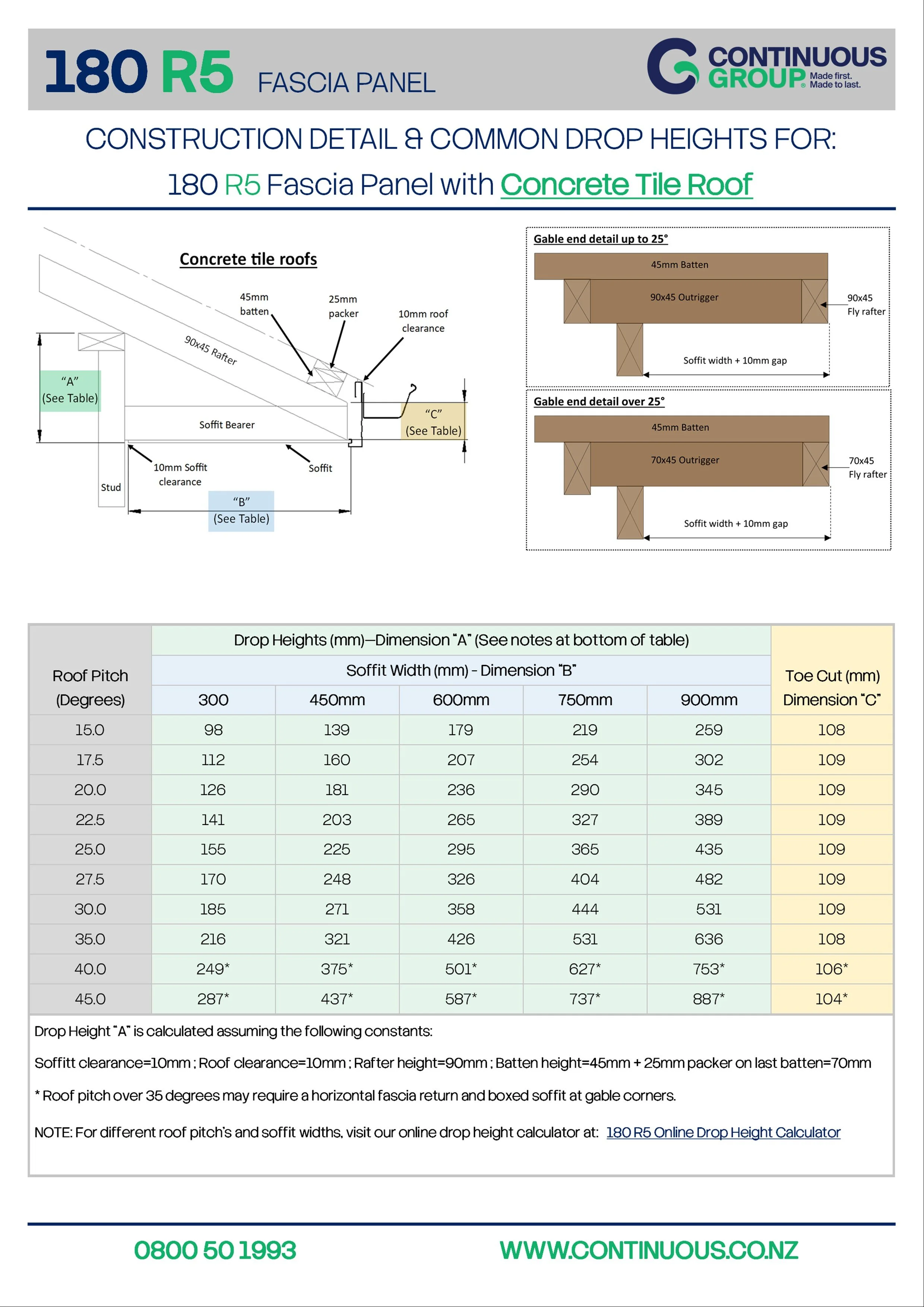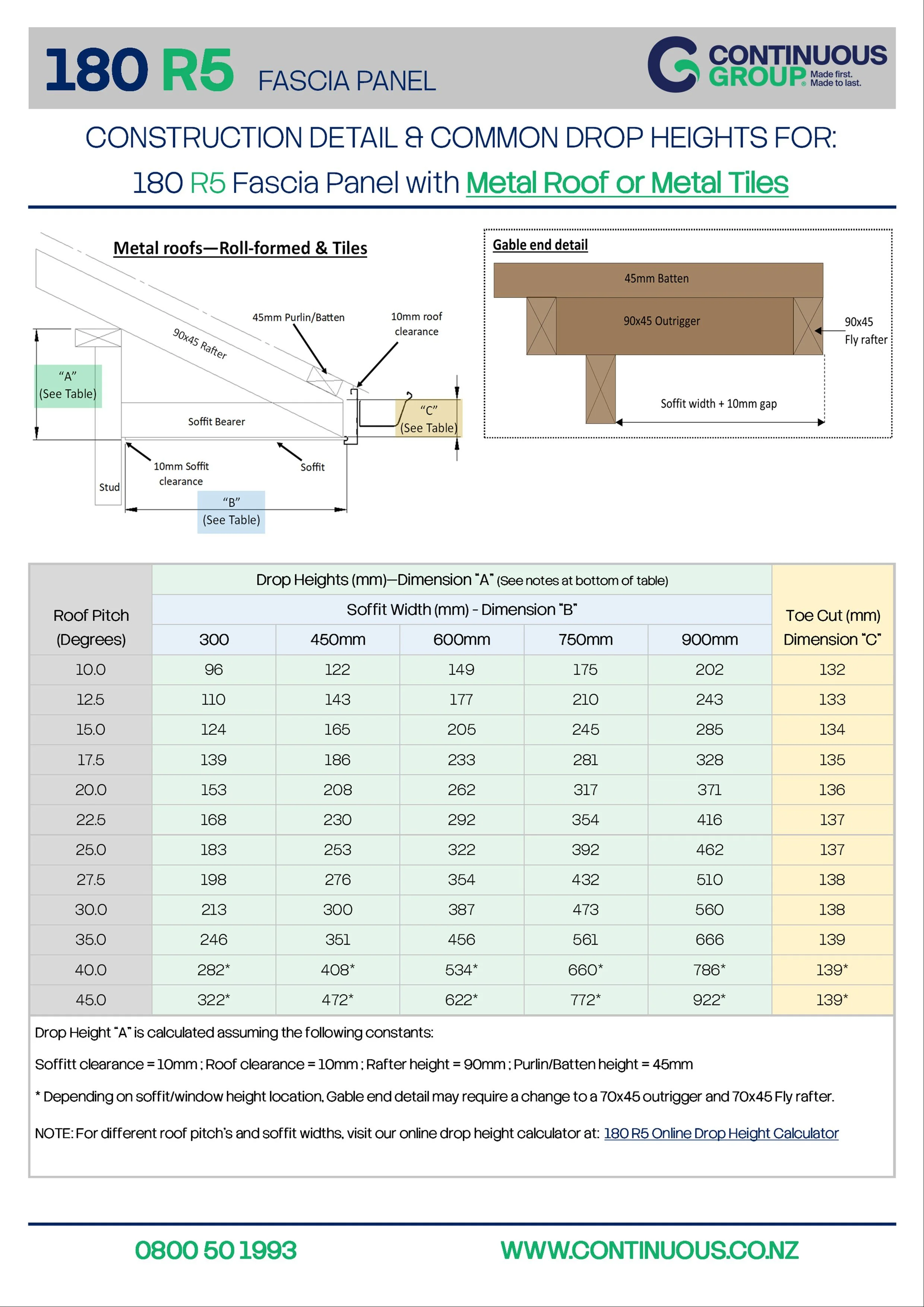 Drop Height Calculator - 180 R5 Fascia Panel