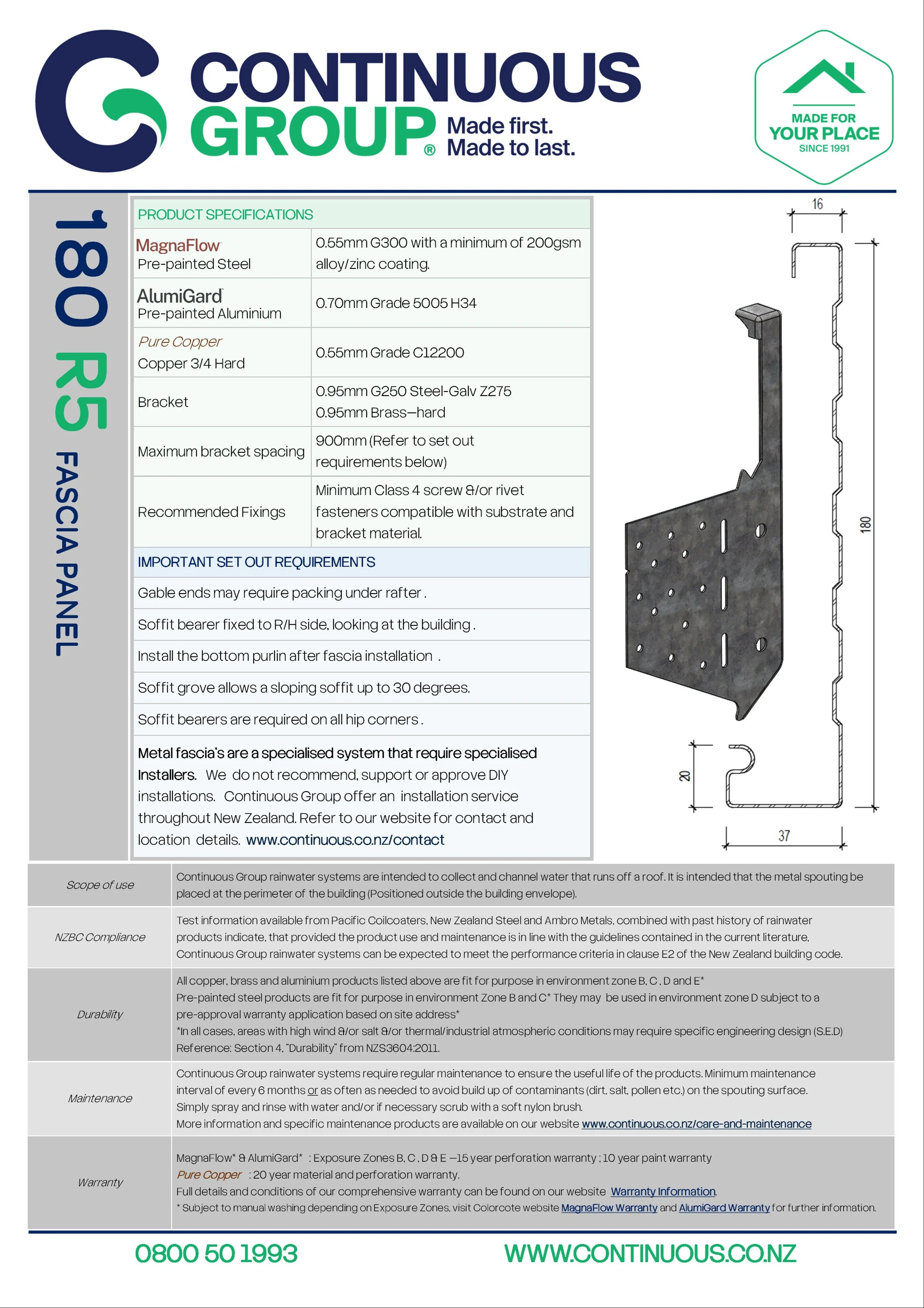 Scroll down to see images of 180 R5 fascia by Continuous on a range of Kiwi homes, along with colour and finish options and downloadable technical files.